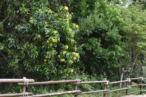 ロストリバーデルタで 黄色い花が咲いている木があります。 キサントステモンという フトモモ科の植物です。 今年の1月にも満開に咲いていた この花。 温かいところを好むと されていますが なぜかこの場所では 秋から冬に咲かせるようです。 この日はヒヨド…
