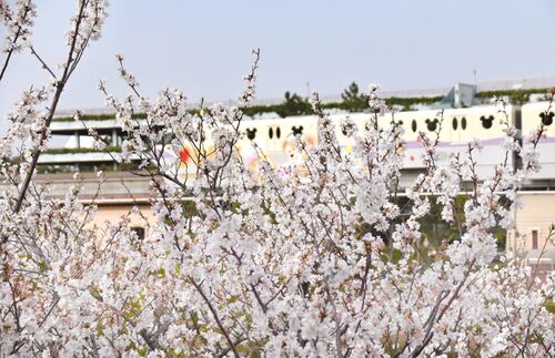 ※本日TDRは休園です※ シーのピクニックエリア オオシマザクラが満開になりました。 相変わらずエリア内へは 入れませんが ミラコスタの通路からは 近くで見ることができます。 ※舞浜駅からの徒歩ルートでは 近づけないのでシーステーションから ミラコ口改札…