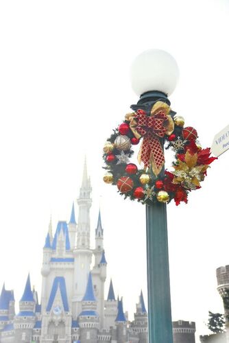 シンデレラ城前は すてきなリースなどの 飾り付けと一緒に こんなハンギングがあります。 赤はミニシクラメン、 白はシルバーリーフの 白妙菊です。 さりげない飾りですが 立体的な斜めストライプを 植物で描いているのは 芸術的に感じます。 今年はクリスマ…