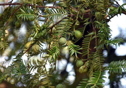 ハイタイドトリート沿いの 道に生えているこちらの木。 カヤの木です。 碁盤(ごばん)の材料などとして 高級な木材になるらしいのですが 成長速度が遅いため 今はあまり流通していないようです。 そんなカヤの木。 今は緑色の実が 大量に実っています。 地…