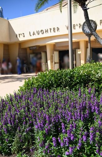 モンスターズインクライド&ゴーシークの そばで咲いているのは アンゲロニアです。 夏の暑い時期から 長い間楽しめるお花です。 この場所をはじめとして トゥモローランドには 紫色の花が多い印象があります。