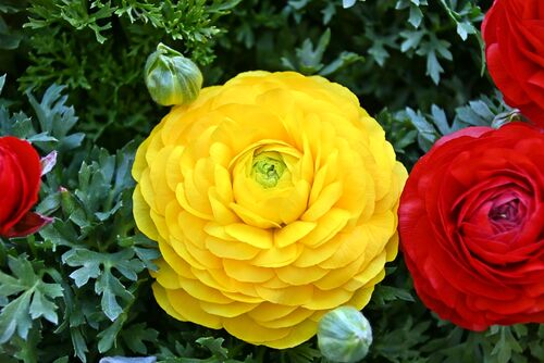 パラッツォカナルにある コチラの寄せ植え。 咲いているお花は ラナンキュラスです。 みっちりとした花びらは 多いもので200枚以上あるのだとか。 こんなにたくさんの花びらが つまっている蕾はどれだけ 大きなものかと思いますが 写真に写っている 小さなも…