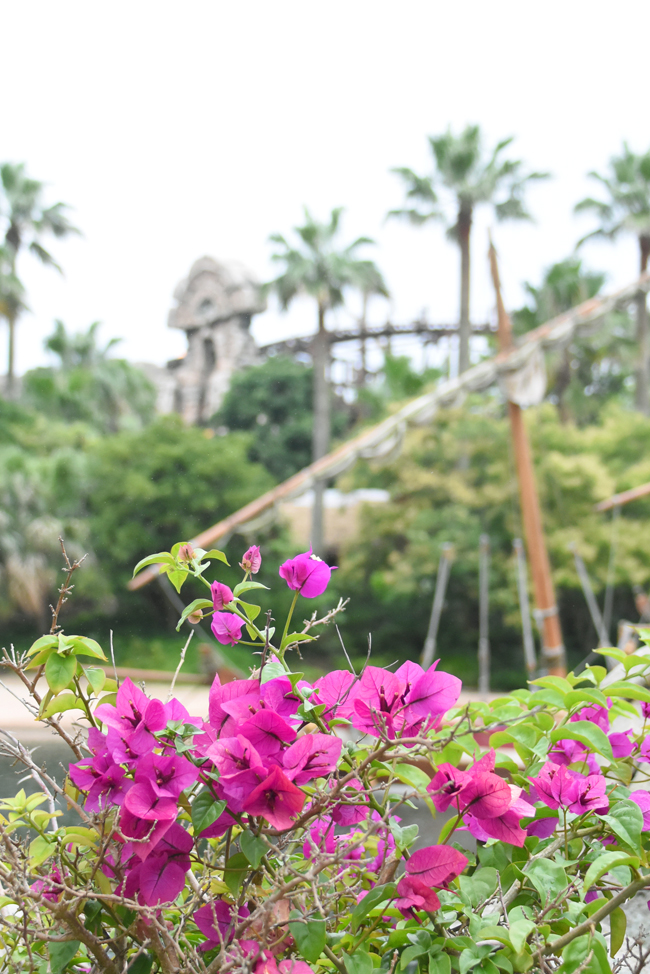2022-07-23 南国の植物 ディズニーシー 夏 は行 ピンク アラビアンコーストで 見られるブーゲンビリア。 ピンクの部分は 葉が変化した苞葉(ほうよう)です。 花びらではないので 長い間楽しむことができます。 鮮やかなピンクは アラビアンコーストの 暑い夏のイメージに とっても合っていますよね。 よく見るとトゲも見られますが これは蕾になり損ねた 花芽なんだとか。 南国の植物は 不思議がいっぱいです。