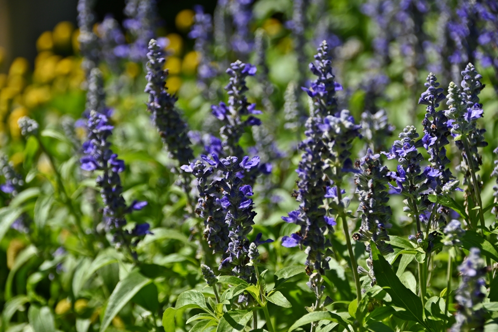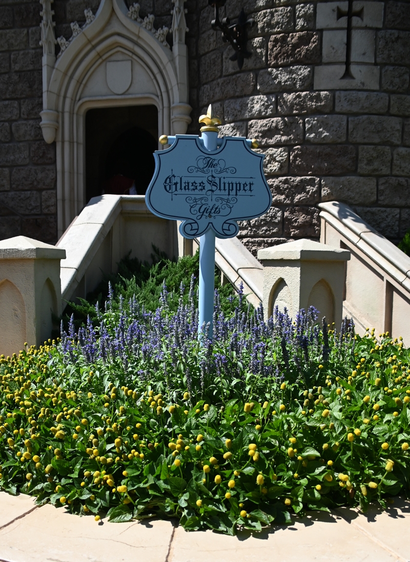 2023-10-11 シンデレラカラー シンデレラ城のふもと ガラスの靴の看板のまわりを 可愛いお花が囲んでます。 紫の花は サルビアファリナセア。 ブルーサルビアとも呼ばれます。 黄色いコロコロした花は キバナオランダセンニチ。 ここは黄色い花と ブルー系の花の組み合わせで 植えられることが多い場所です。 シンデレラの色を イメージしているのだと 思われます。 お花でキャラクターを 表現するのは パークの植栽ならではという 感じがしますね。